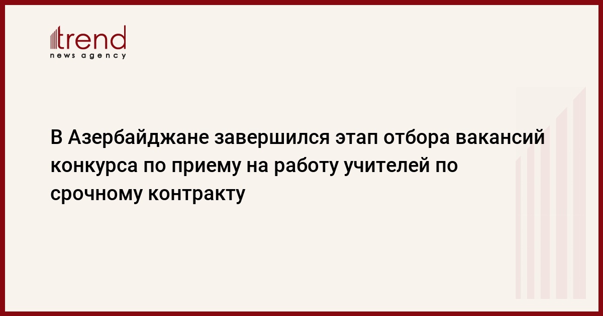 БАКУ /Trend/ - В Азербайджане завершился этап отбора вакансий конкурса по приему на работу учителей по срочному контракту.