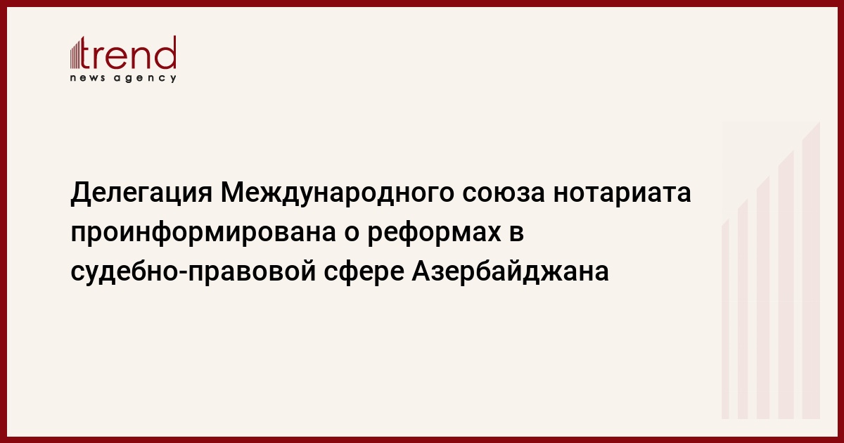 Глава делегации Ричард Бок, в свою очередь, проинформировал о деятельности Международного союза нотариата и высоко оценил проводимые в Азербайджане реформы в судебно-правовой сфере.