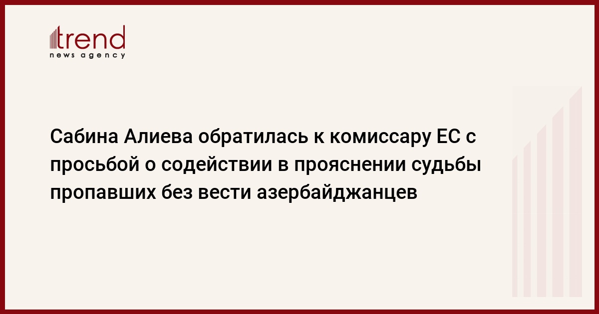 Также омбудсмен проинформировала об оккупационной и террористической политике Армении в отношении Азербайджана, отметив, что в первой Карабахской войне пропало без вести около 4000 азербайджанцев, о судьбе которых Армения до сих пор не предоставила информации. С.Алиева довела до внимания комиссара Совета Европы по правам человека чаяния членов семей пропавших без вести граждан и попросила оказать содействие в прояснении их судьбы в рамках ее полномочий.