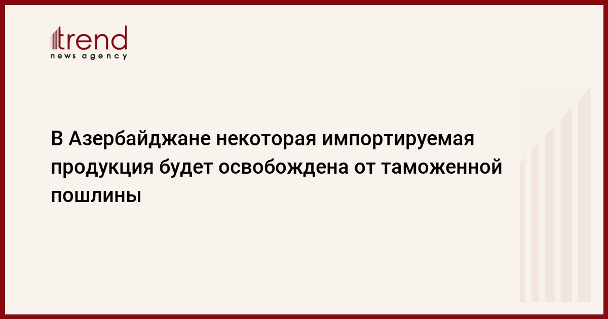 БАКУ/Trend/ – Оборудование, ввозимое в Азербайджан для создания и производства изделий оборонного назначения, будет освобождено от таможенной пошлины.