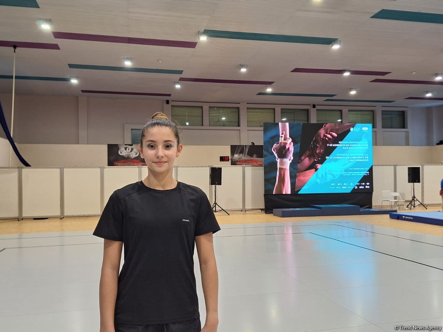 "На чемпионате Азербайджана я участвую, как в индивидуальной программе, так и в составе трио. Безусловно, в составе трио ответственность возрастает, здесь ты отвечаешь не только за себя, но и подруг по группе", - подчеркнула воспитанница клуба "Оджаг Спорт".