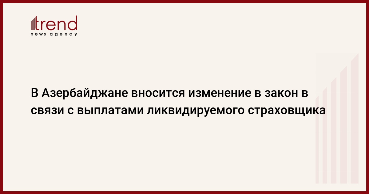 Согласно изменению, при ликвидации страховщика требования его кредиторов, принятые страховщиком, будут погашаться в новом порядке. Так, в восьмую очередь подлежат уплате суммы по налогам в государственный бюджет, взносам на обязательное государственное социальное страхование в государственные внебюджетные фонды, взносам на страхование по безработице, а также взносам на обязательное медицинское страхование в Фонд обязательного медицинского страхования, задолженности по возврату кредитов, выданных из государственного бюджета. Также устанавливаются требования, возникшие в связи с пошлинами и обязательными выплатами, установленными законом Азербайджанской Республики "Об обязательном страховании от потери профессиональной трудоспособности в результате несчастных случаев на производстве и профессиональных заболеваний" в течение года до даты ликвидации страховщика.
