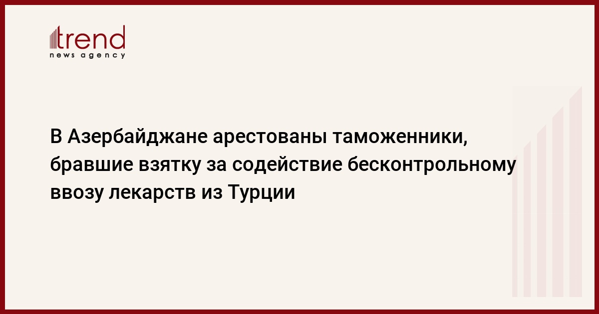 БАКУ /Trend/ - Арестованы два сотрудника таможенного поста "Садарак" Нахчыванской Автономной Республики, которые за взятку создали условия для бесконтрольного перемещения 25 наименований лекарственных средств на территорию Азербайджана без государственной регистрации.