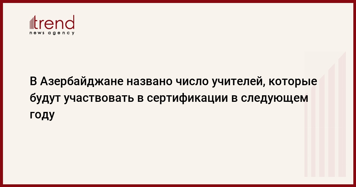 "Планируется, что по математике сертификацию пройдут 11 тысяч 290 учителей, по азербайджанскому языку - 1284, по английскому языку - 12 тысяч 35, по русскому языку (азербайджанское отделение) и по русскому языку и литературе (русское отделение) - 5868, по немецкому языку - 236, по французскому языку - 222 учителя.