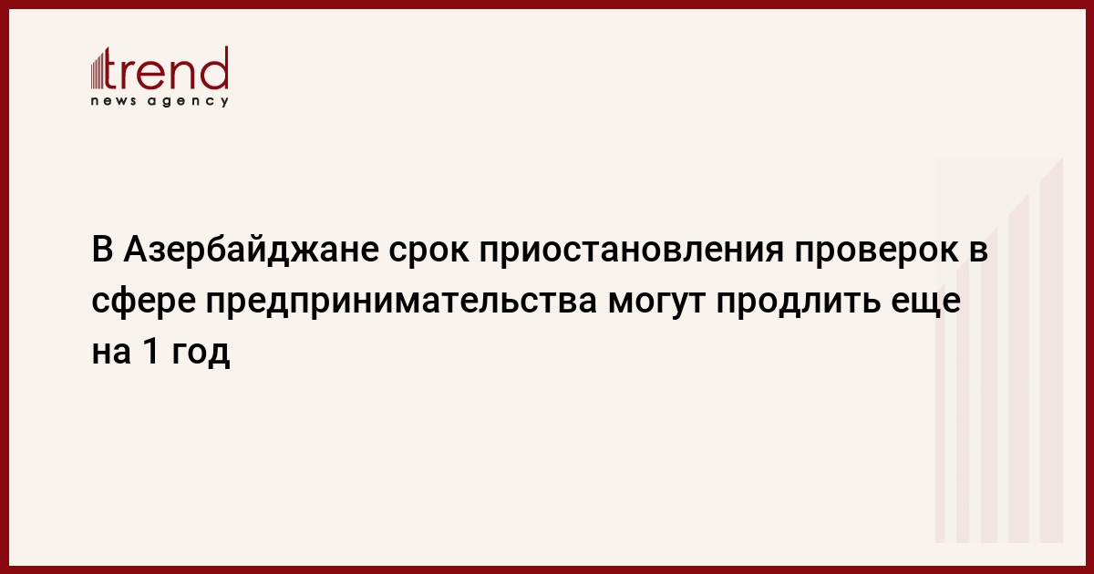 БАКУ /Trend/ - Срок приостановления проверок в сфере предпринимательства в Азербайджане планируется продлить до 1 января 2025 года.