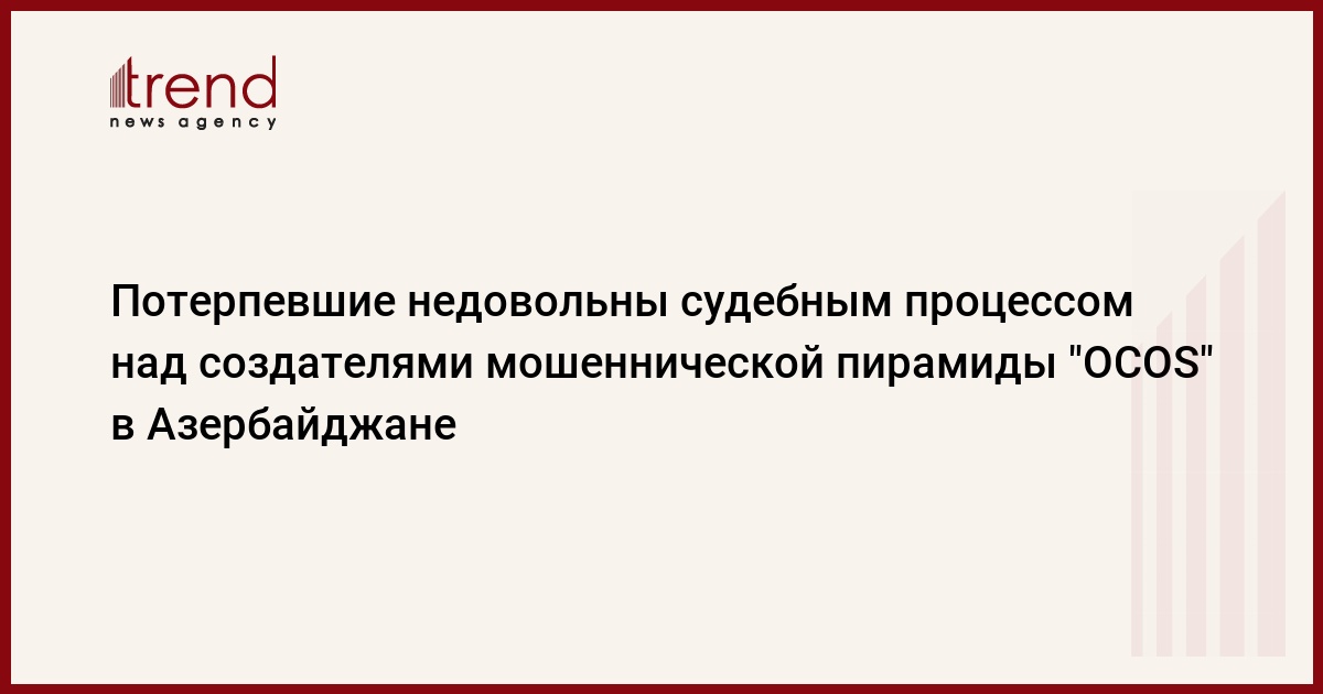 БАКУ /Trend/ - Пирамида "OCOS" охватившая все регионы Азербайджана, являлась одной из самых крупных сетей по размеру нанесенного ущерба. Сообщается, что сетью было присвоено более 8 миллионов манатов, принадлежащих гражданам.
