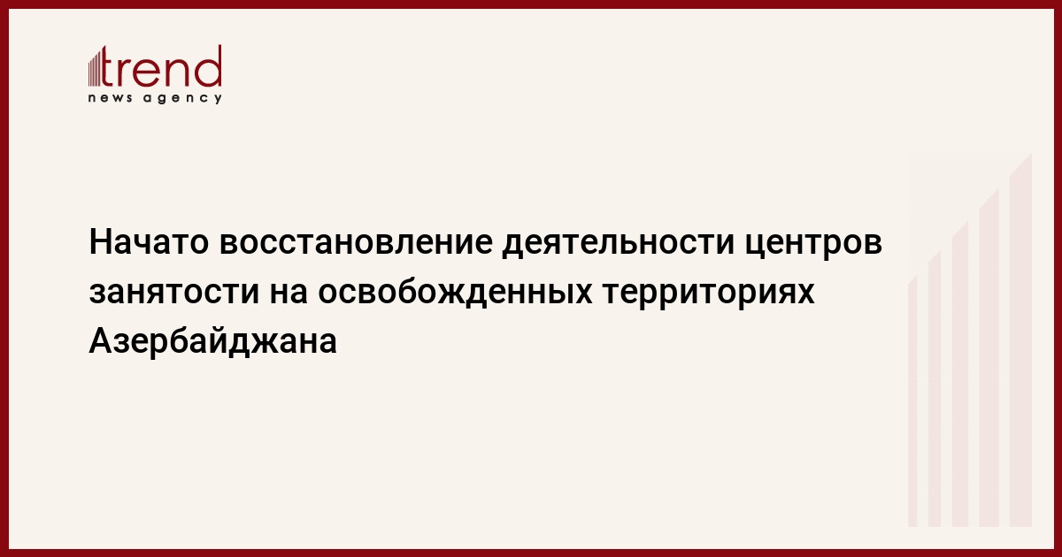 БАКУ /Trend/ - Начато восстановление деятельности центров занятости на освобожденных территориях Азербайджана.