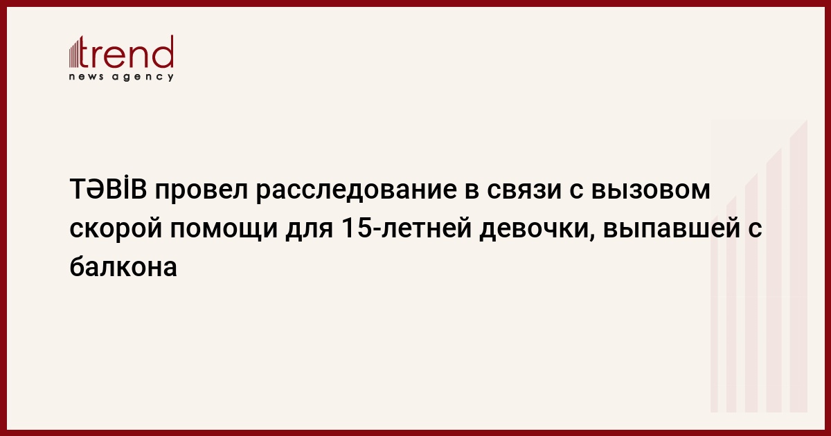 БАКУ /Trend/ - Объединением по управлению медицинскими территориальными подразделениями Азербайджана (TƏBİB) было проведено соответствующее расследование в связи с поступившим вызовом для Аян Аслановой по адресу: Абшеронский район, поселок Масазыр, Физули 49.