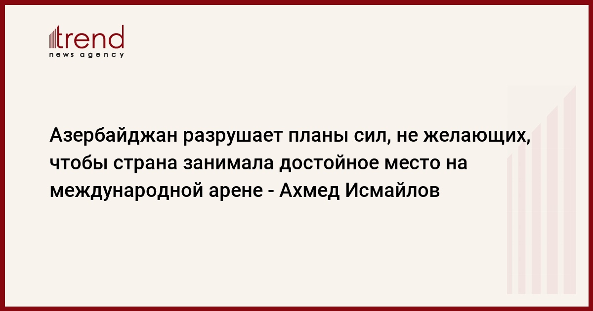 "Будучи победителем, Азербайджан является не только гордостью каждого нашего соотечественника, но еще и разрушает планы сил, которые не хотят, чтобы наша страна занимала передовые позиции, достойное место на международной арене.