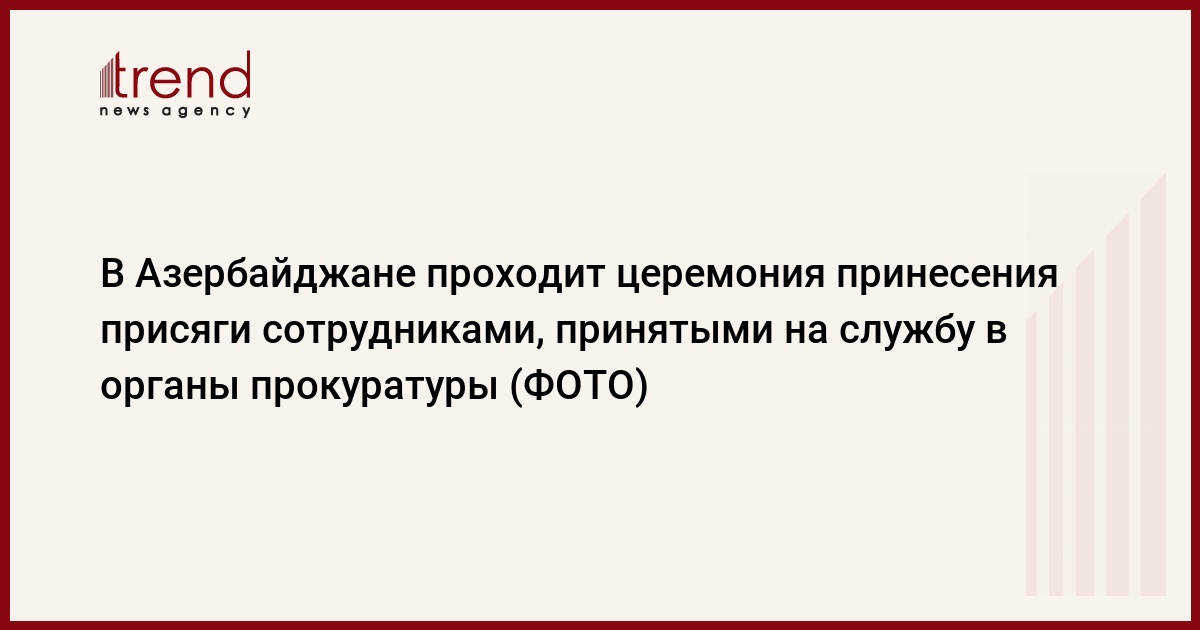 БАКУ /Trend/ - В Генеральной прокуратуре Азербайджанской Республики проходит церемония принятия присяги молодыми сотрудниками, принятых на службу в органы прокуратуры на конкурсной основе.