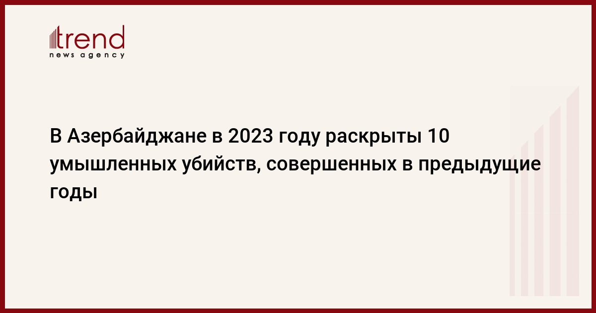БАКУ /Trend/ - В Азербайджане в 2023 году раскрыты 10 умышленных убийств, совершенных в предыдущие годы.