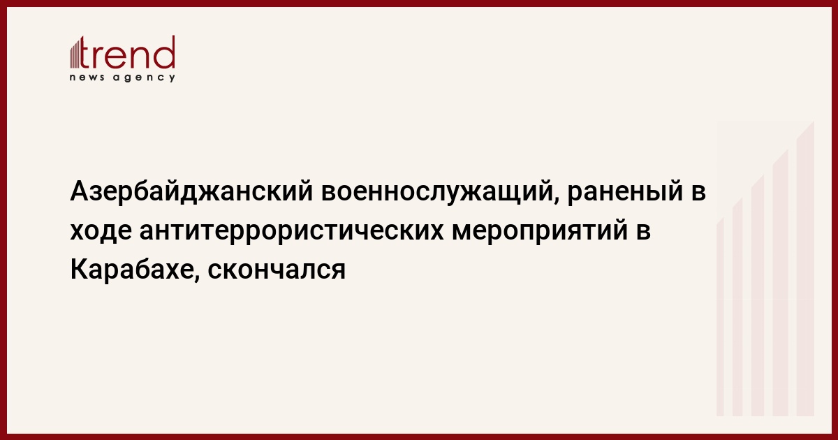 БАКУ /Trend/ - Азербайджанский военнослужащий сверхсрочной действительной военной службы Гасымов Гаджиали Таир оглу, тяжело раненый 19 сентября прошлого года во время локальных антитеррористических мероприятий, проводимых Вооруженными Силами Азербайджана, и проходивший длительное лечение в военно-медицинском учреждении с диагнозом церебральная кома, несмотря на усилия врачей, стал шехидом.