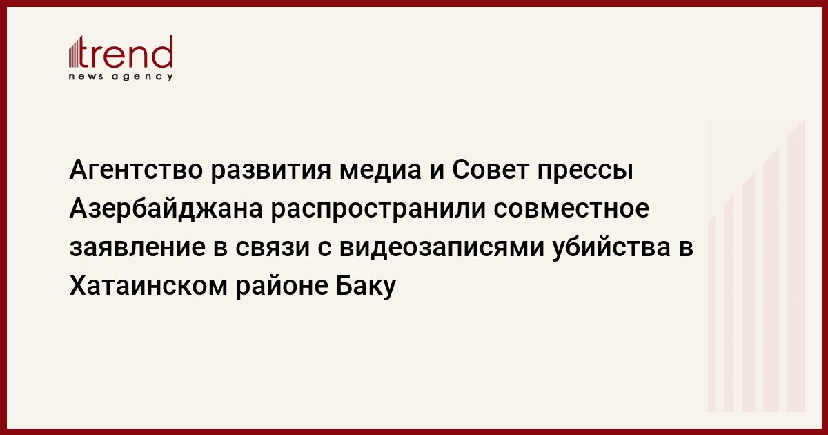 БАКУ /Trend/ - Агентство развития медиа и Совет печати Азербайджана распространили совместное заявление относительно фотографий и видеозаписей, опубликованных в связи с убийством, совершенным 13 февраля в Хатаинском районе города Баку.