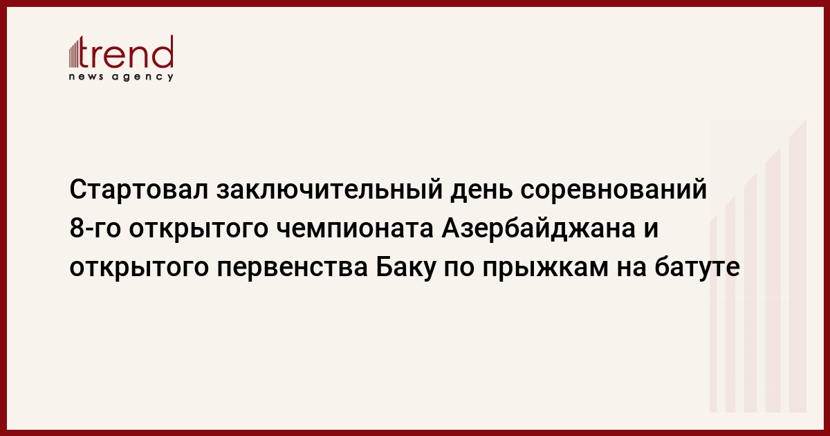 БАКУ /Trend/ - 16 февраля в Бакинском Олимпийском спортивном комплексе стартовал заключительный день соревнований 8-го открытого чемпионата Азербайджана и открытого первенства Баку по прыжкам на батуте, сообщает в пятницу Trend.