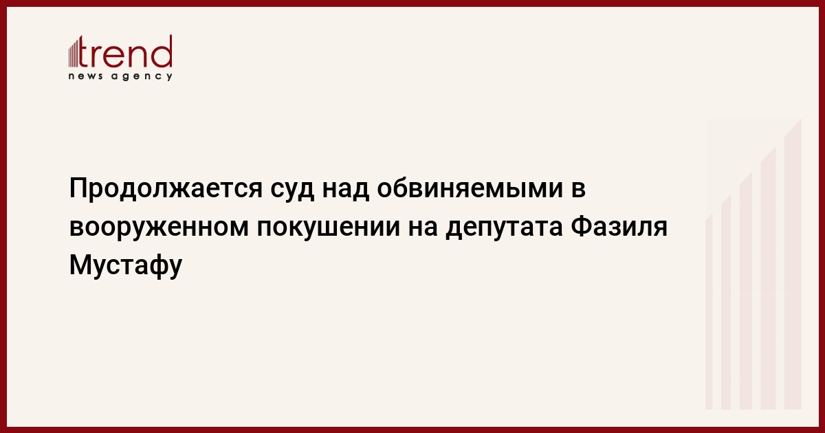 БАКУ /Trend/ - Продолжается суд над пятью лицами, обвиняемыми в вооруженном покушении на депутата Милли Меджлиса (парламент) Азербайджана Фазиля Мустафу.