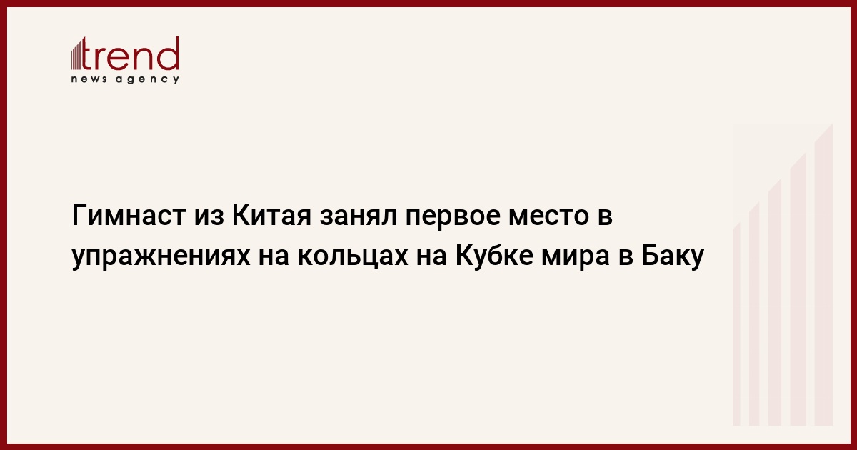 БАКУ /Trend/ - Гимнаст Хао Ю, представляющий Китай, с результатом 14.900 балла занял первое место в упражнениях на кольцах на Кубке мира FIG по спортивной гимнастике в Баку, сообщает в субботу Trend.