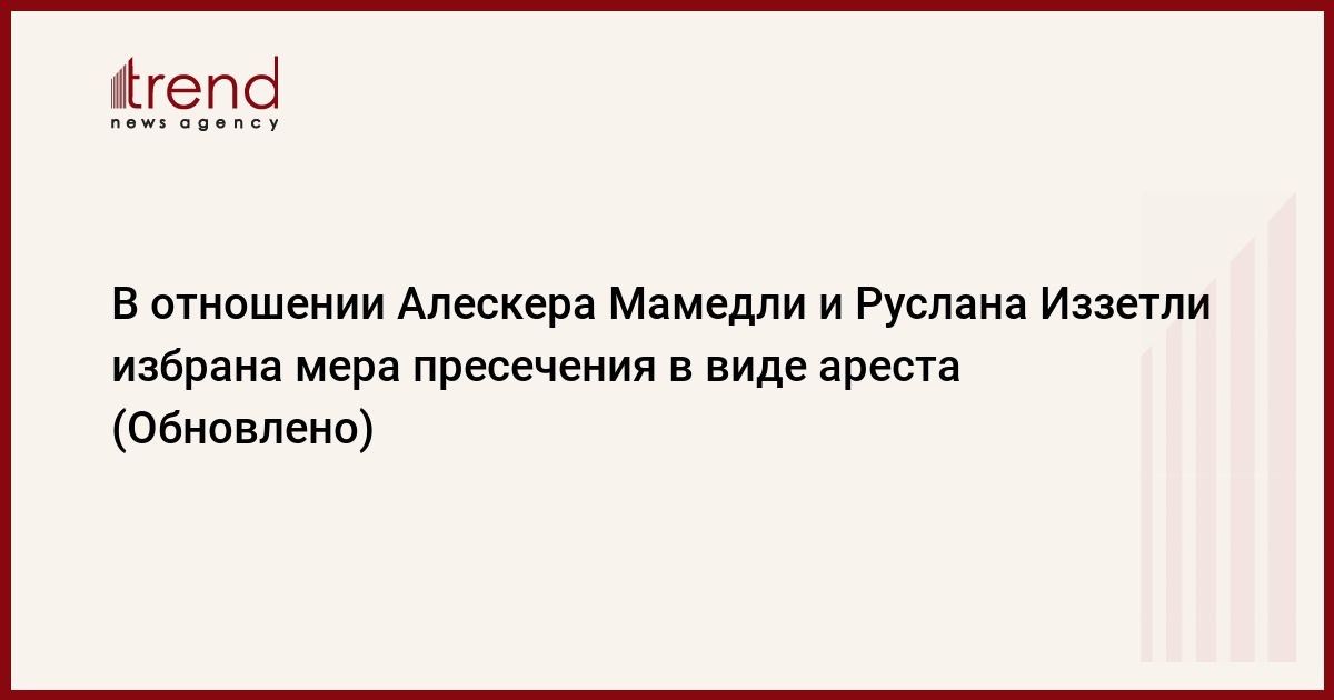 18:42 (GMT+4) Соучредитель Toplum TV, медиаэксперт Алескер Ахмедоглу (Мамедли) приговорен к заключению под стражей сроком на 4 месяца.