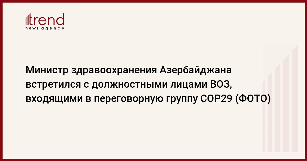 "Главы департаментов ВОЗ также отметили, что проведение в Азербайджане СОР29 является большим достижением для Азербайджана. Было подчеркнуто, что руководимые ими структуры Всемирной организации здравоохранения готовы оказать всестороннее содействие Азербайджану в процессе председательства в СОР29 и проведения данного мероприятия.