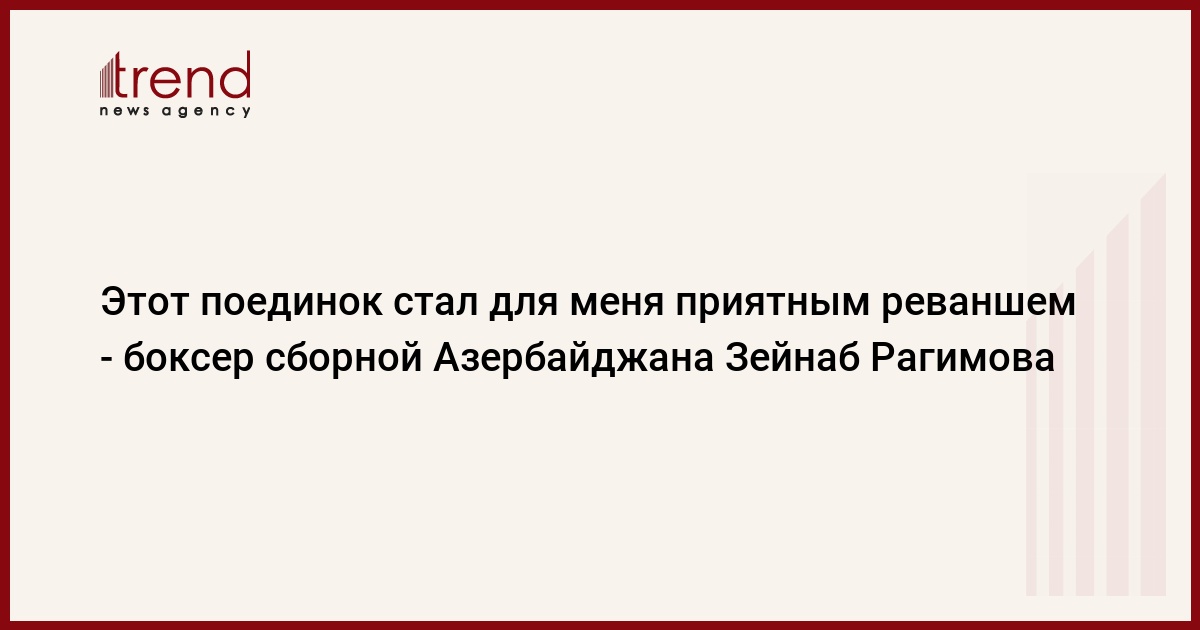 Как сообщает в пятницу Trend, об этом İdman.biz заявила боксер сборной Азербайджана Зейнаб Рагимова (54 кг).