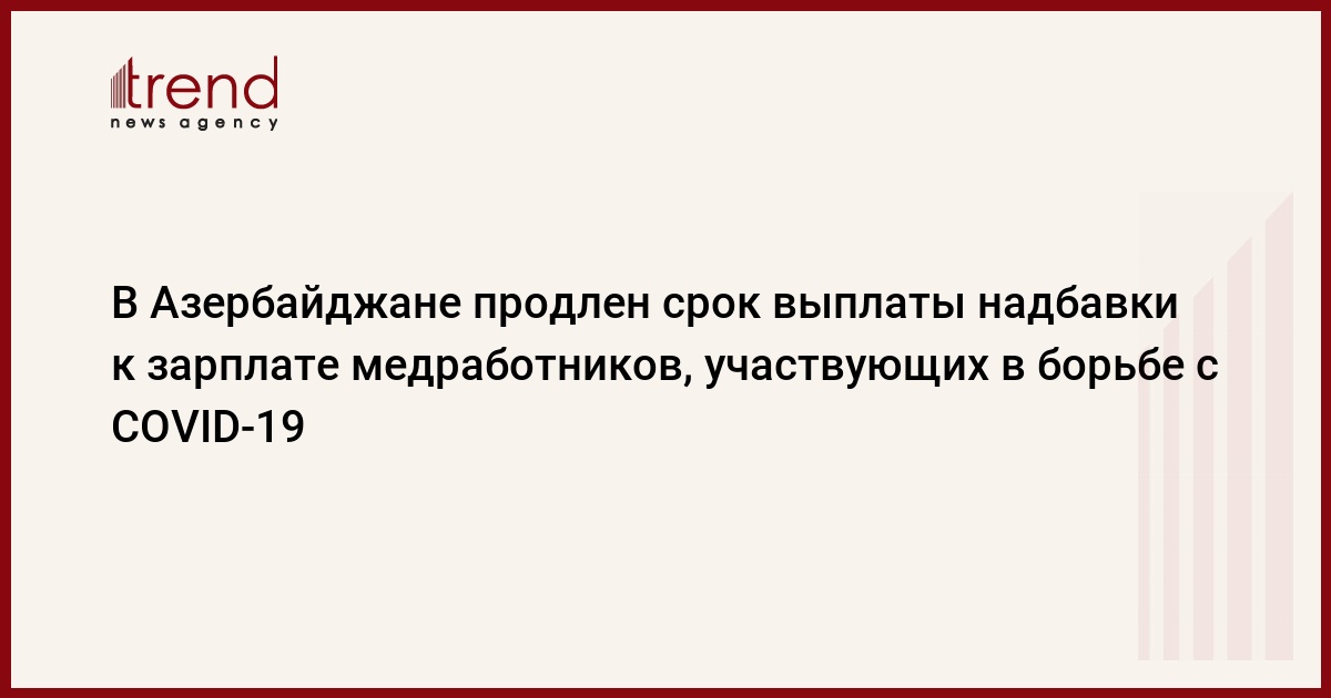 БАКУ /Trend/ - В Азербайджане продлен срок выплаты надбавки к зарплате медработников, участвующих в борьбе с COVID-19