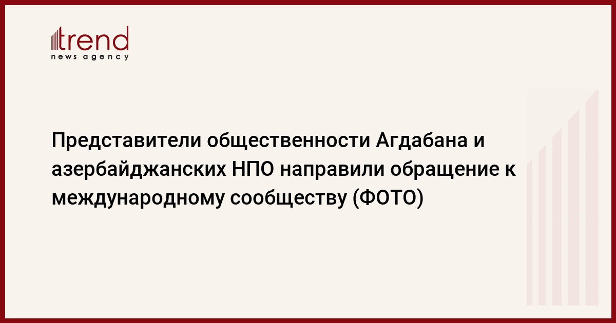 БАКУ /Trend/ - Представители общественности Агдабана и азербайджанских НПО обратились к международному сообществу с открытым письмом.