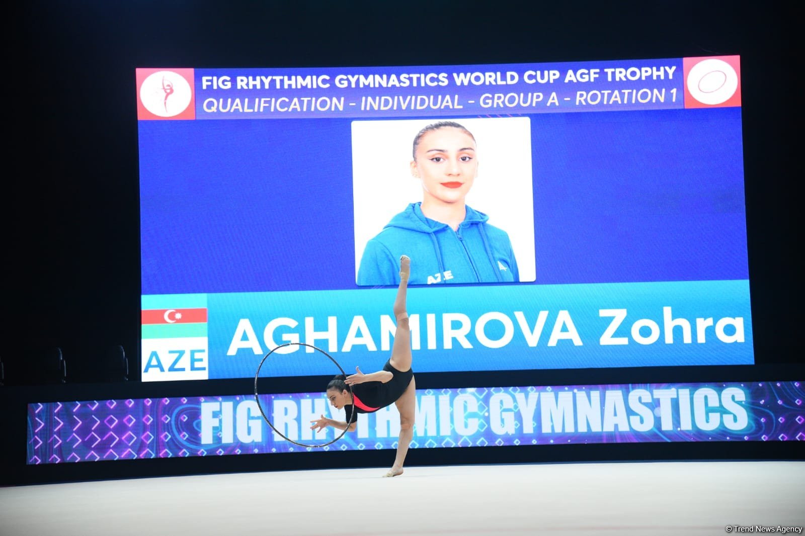 Азербайджан на Кубке мира по художественной гимнастике представляют: в индивидуальной программе - Зохра Агамирова и Камилла Сеидзаде, а также команда в групповых упражнениях, в состав которой вошли Гюллю Агаларзаде, Камилла Алиева, Елизавета Лузан, Дарья Сорокина, Ляман Алимурадова и Зейнаб Гумметова.