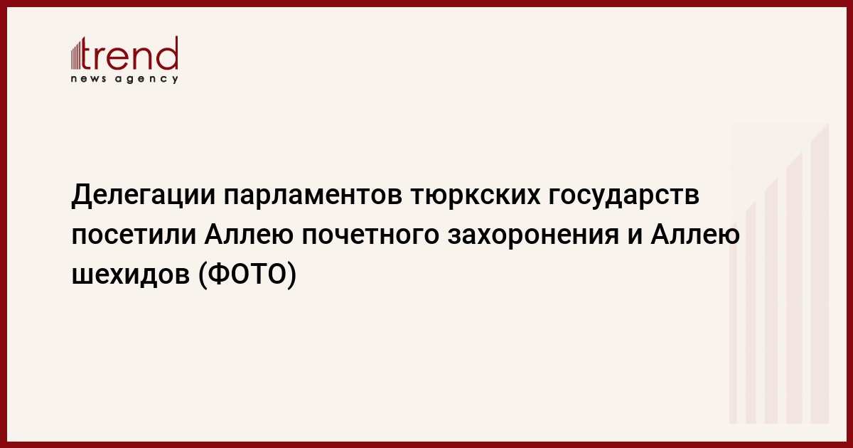 БАКУ /Trend/ - Участники первого заседания председателей комитетов по внешним связям парламентов тюркских государств, проходящего 25 апреля в Баку, почтили в Аллее почетного захоронения память общенационального лидера азербайджанского народа, архитектора и основателя современного независимого Азербайджанского государства Гейдара Алиева, и возложили венок к его могиле.