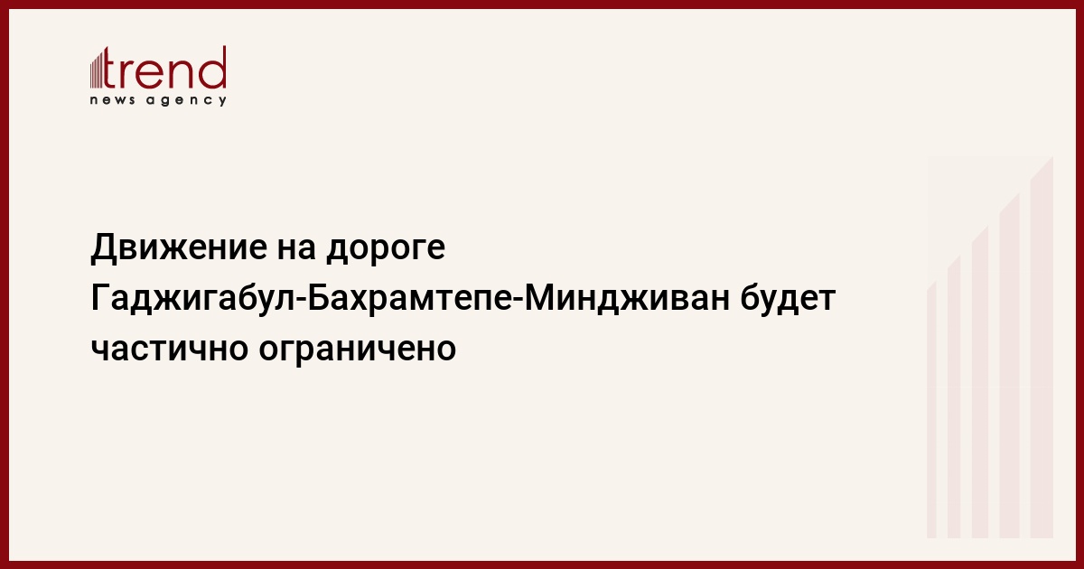 БАКУ /Trend/ - Завтра с 11:00 будет частично ограничено движение транспортных средств в связи со строительством надземного пешеходного перехода на пролегающем через территорию Сабирабадского района 43-километровом участке автодороги Гаджигабул-Бахрамтепе-Миндживан-государственная граница с Арменией.