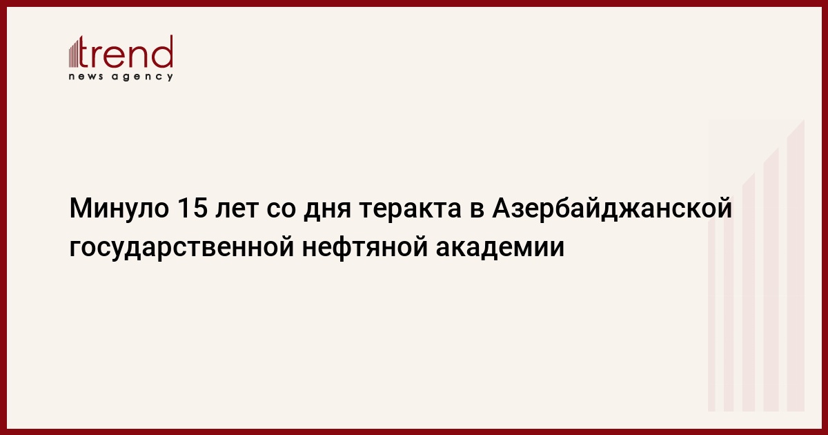 БАКУ /Trend/ - Минуло 15 лет со дня террористического акта, совершенного в Азербайджанской государственной нефтяной академии (ныне Азербайджанский государственный университет нефти и промышленности), сообщает во вторник Trend.