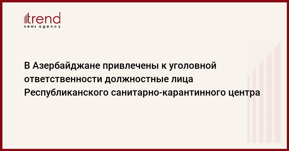 БАКУ /Trend/ - Должностные лица Республиканского санитарно-карантинного центра привлечены к уголовной ответственности.