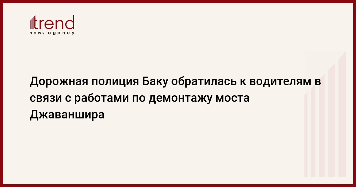 БАКУ /Trend/ - Как сообщалось, в связи с работами по демонтажу моста Джаваншира в Баку будет реорганизовано движение транспорта.
