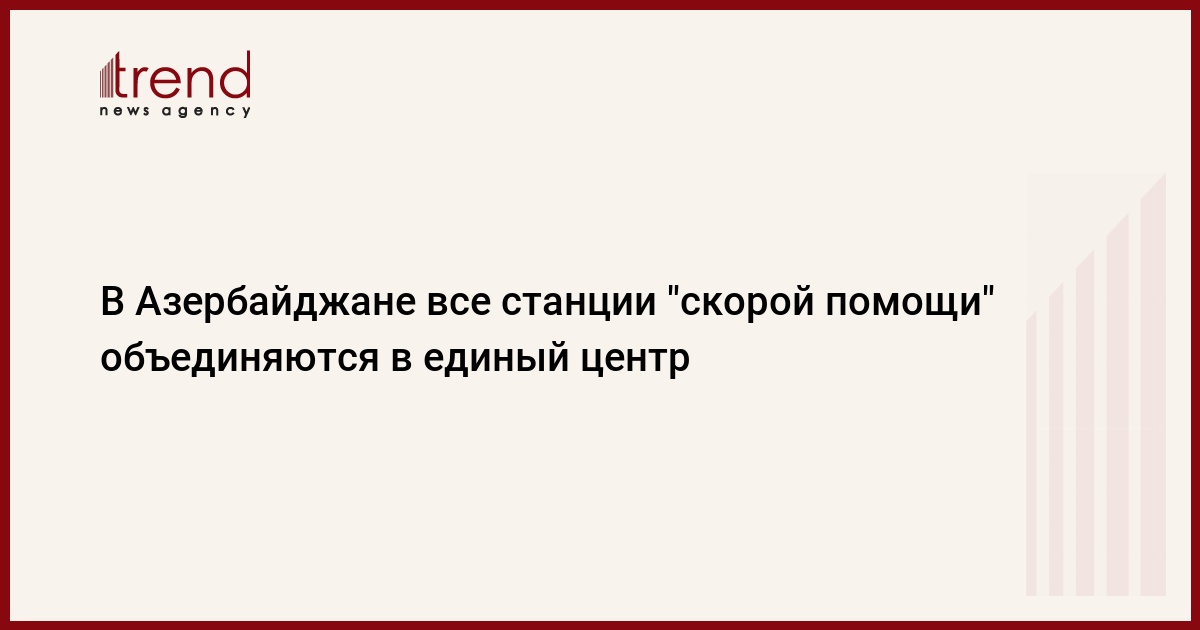 БАКУ /Trend/ - В связи с соответствующим решением Наблюдательного совета TƏBIB от 19 июля 2023 года, согласно приказу исполнительного директора TƏBIB, начат процесс поэтапной ликвидации штатных единиц станций скорой и неотложной медицинской помощи юридического лица публичного права "Бакинская городская станция скорой и неотложной медицинской помощи", юридического лица публичного права "Автобаза скорой помощи" и других медицинских учреждений, находящихся в подчинении TƏBIB, и их поэтапного объединения в новосозданное юридическое лицо публичного права "Республиканский центр скорой медицинской и неотложной помощи".