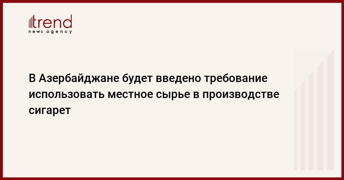 БАКУ /Trend/ - В Азербайджане в отношении производства сигарет, вносится условие о разрешении на производство продукции с использованием местного сырья.