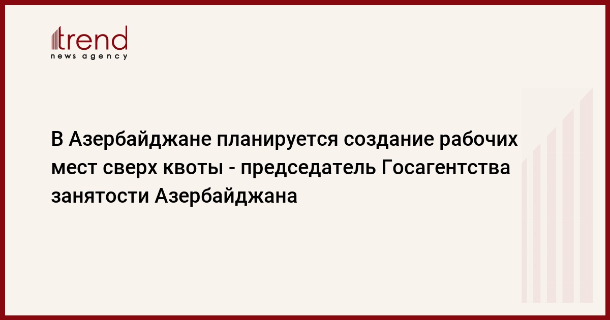 БАКУ /Trend/ - В Азербайджане планируется создание рабочих мест сверх квоты.