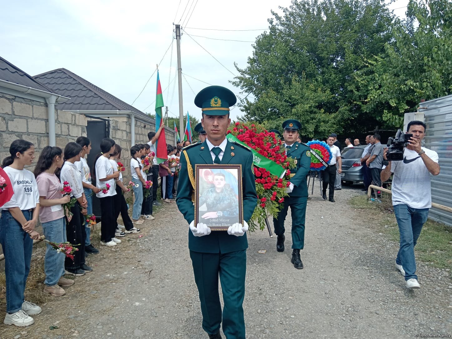 В Тертерском районе проходит церемония прощания с майором Бахышлы Бахышом Эльшан оглу, погибшим в результате удара молнии на служебной территории пограничного отряда "Лянкяран" Пограничных войск Государственной пограничной службы Азербайджана (ГПС).
