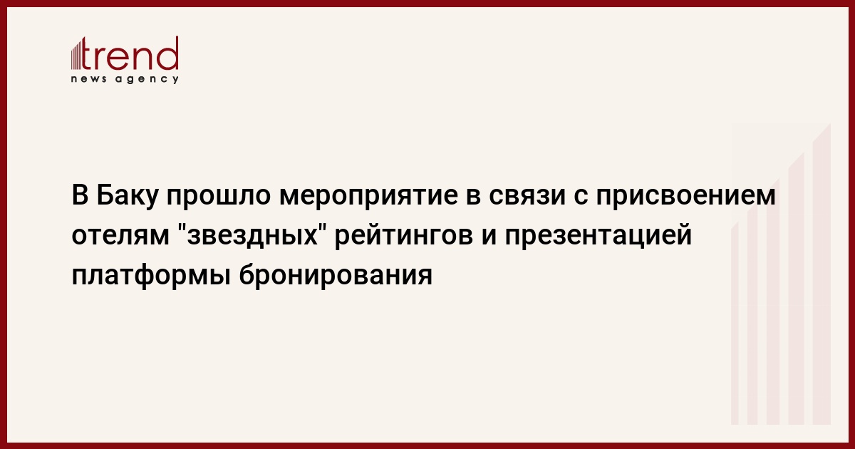 БАКУ /Trend/ - 3 июля состоялось мероприятие, организованное Государственным агентством по туризму Азербайджана и посвященное присвоению "звездных" рейтингов отелям, прошедшим Национальную "звездную" классификацию, и презентации Национальной платформы бронирования.
