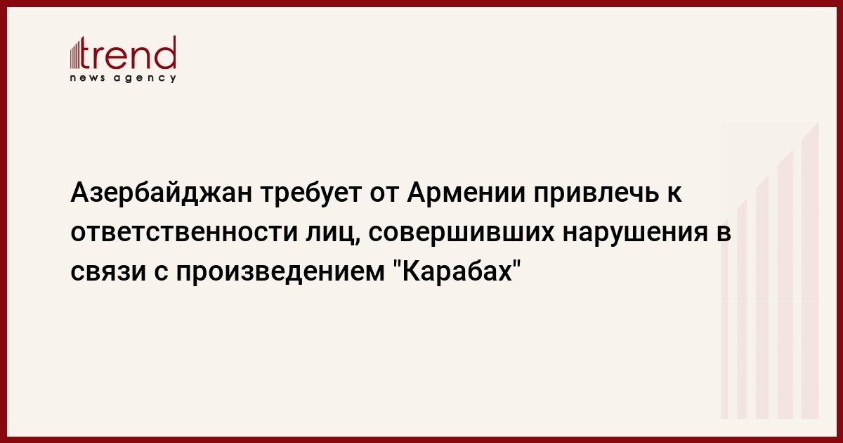 В связи с этим мы требуем устранения случаев массового исполнения и представления произведения азербайджанского композитора Бахрама Насибова "Карабах" в качестве "армянской народной песни" под названием "Sirun jan" с измененными словами в исполнении Гора Епремяна и устранения плагиата, восстановления авторских прав Бахрама Насибова, привлечения к ответственности лиц, совершивших правонарушение, в соответствии с международным правом и национальным законодательством и проинформировать о принятых мерах.