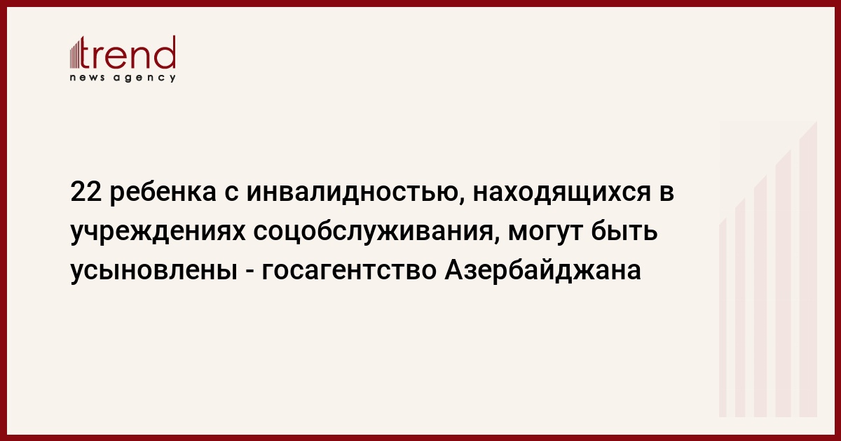 БАКУ /Trend/ - 22 ребенка с инвалидностью, оставшихся без родительского попечения и находящихся в учреждениях социального обслуживания детей при Агентстве по социальным услугам министерства труда и социальной защиты населения, а также детских домах, интернатах и Детском психоневрологическом центре, могут быть усыновлены.