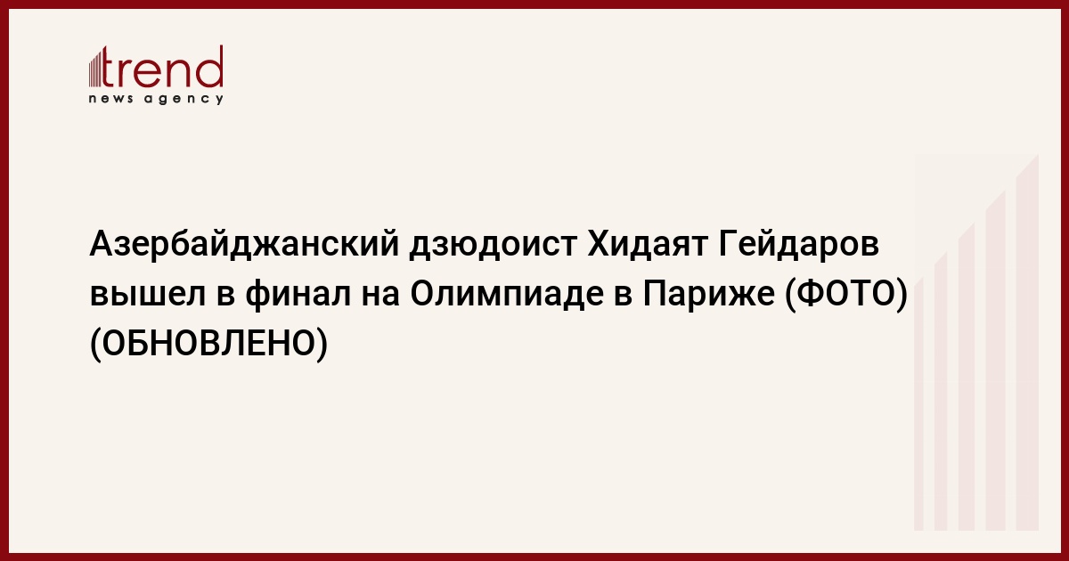 БАКУ /Trend/ - Азербайджанский дзюдоист Хидаят Гейдаров (73 кг) вышел в финал соревнований на Олимпиаде в Париже.