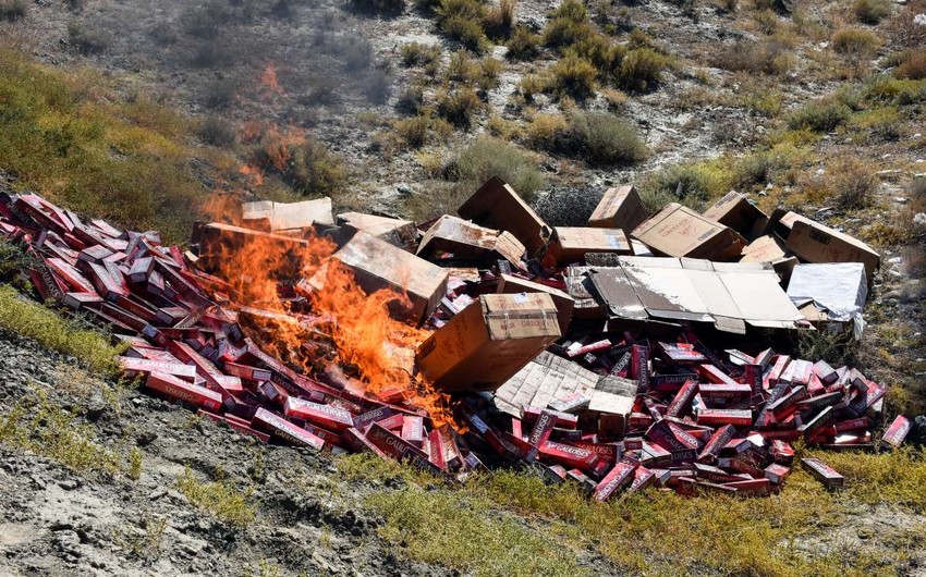 Согласно информации, 34 554 коробки (691 080 штук) сигарет иностранных марок, изъятых таможенными органами, были сожжены в присутствии комиссии, состоящей из сотрудников Нахчыванского Главного таможенного управления.