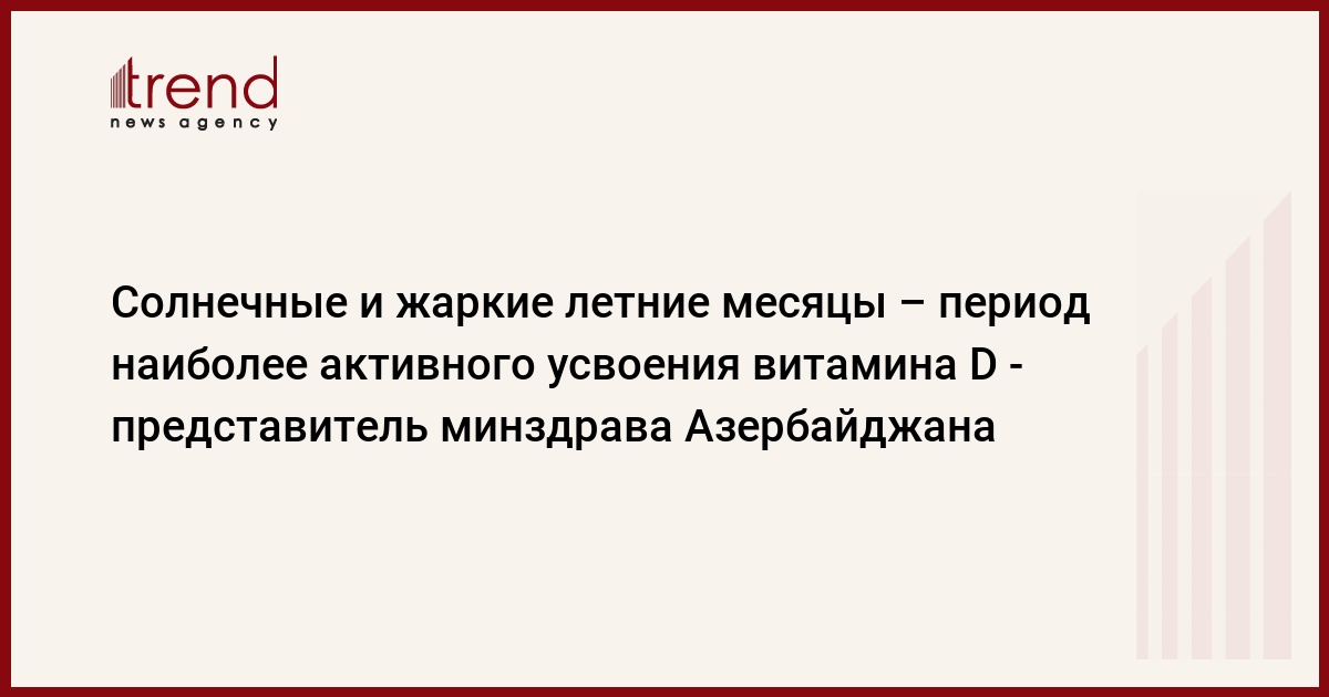 БАКУ /Trend/ - Солнечные и жаркие летние месяцы – период наиболее активного усвоения витамина D.