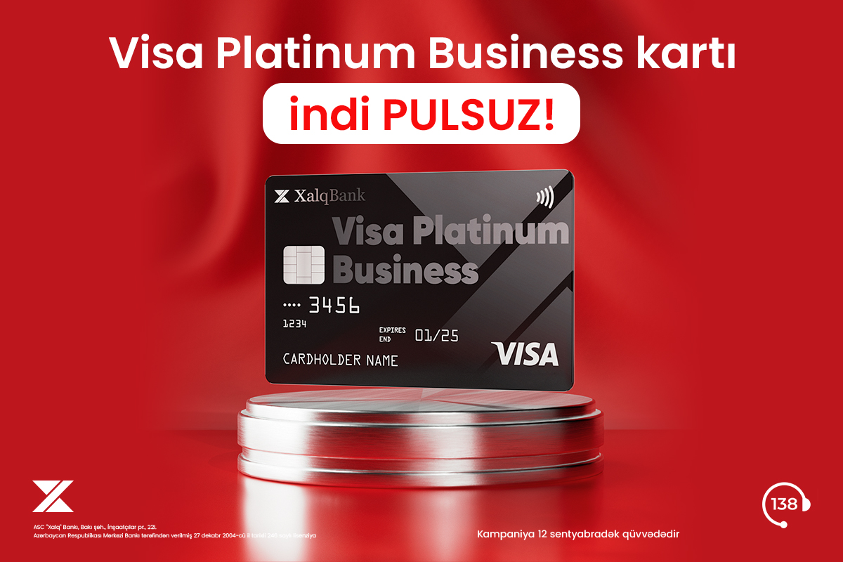 Получив карту Visa Platinum Business, клиенты Халг Банка получат возможность пользоваться премиальными услугами в любой точке мира. Visa Platinum Business предлагает владельцу карты медицинскую помощь во время поездки, бесплатный доступ в бизнес-залы аэропортов в рамках программы LoungeKey, профессиональные услуги Visa Concierge, а также быстрый проход (Fast Track) в аэропортах. Владельцы бизнеса и их сотрудники, которые часто путешествуют, могут воспользоваться выгодными условиями карты Visa Platinum Business и контролировать расходы. Онлайн контроль за операциями и дистанционное банковское обслуживание возможны с мобильным приложением XalqOnline. Карта выдается в разных валютах сроком до 3х лет.