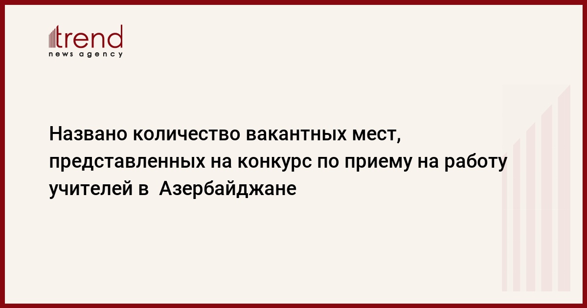 "В конкурсе по приему на работу учителей право на участие в отборе вакансий получили 22 тысячи 93 человека, которые выполнили минимальные требования. На конкурс было представлено 10 тысяч 592 вакантных места", - отметил Нурлан Исмаилбейли.