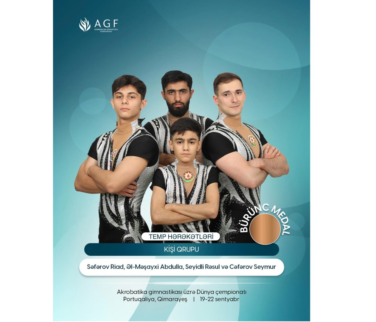 Как передает Trend со ссылкой на İdman.biz, последнюю медаль команде принесла мужская группа в составе Сеймура Джафарова, Абдуллы Аль-Мешаихи, Расула Сеидли и Риада Сафарова. Они завоевали бронзовую медаль в темповом упражнении.