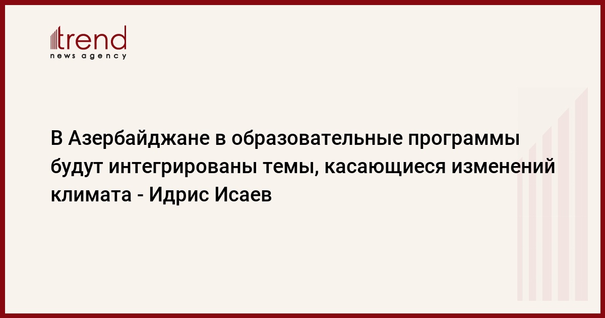 БАКУ /Trend/ - В Азербайджане в образовательные программы будут интегрированы темы, касающиеся изменений климата.