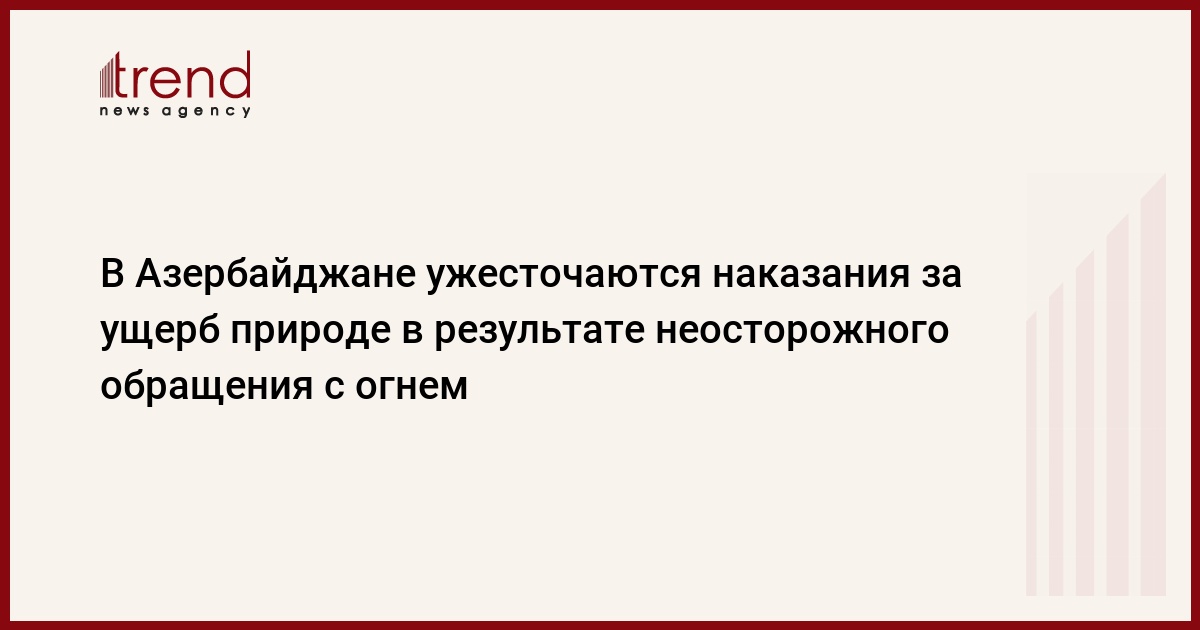 БАКУ /Trend/ - Ужесточаются штрафы за уничтожение или повреждение деревьев, кустарников или других зеленых насаждений в результате неосторожного обращения с огнем или другими источниками повышенной опасности.