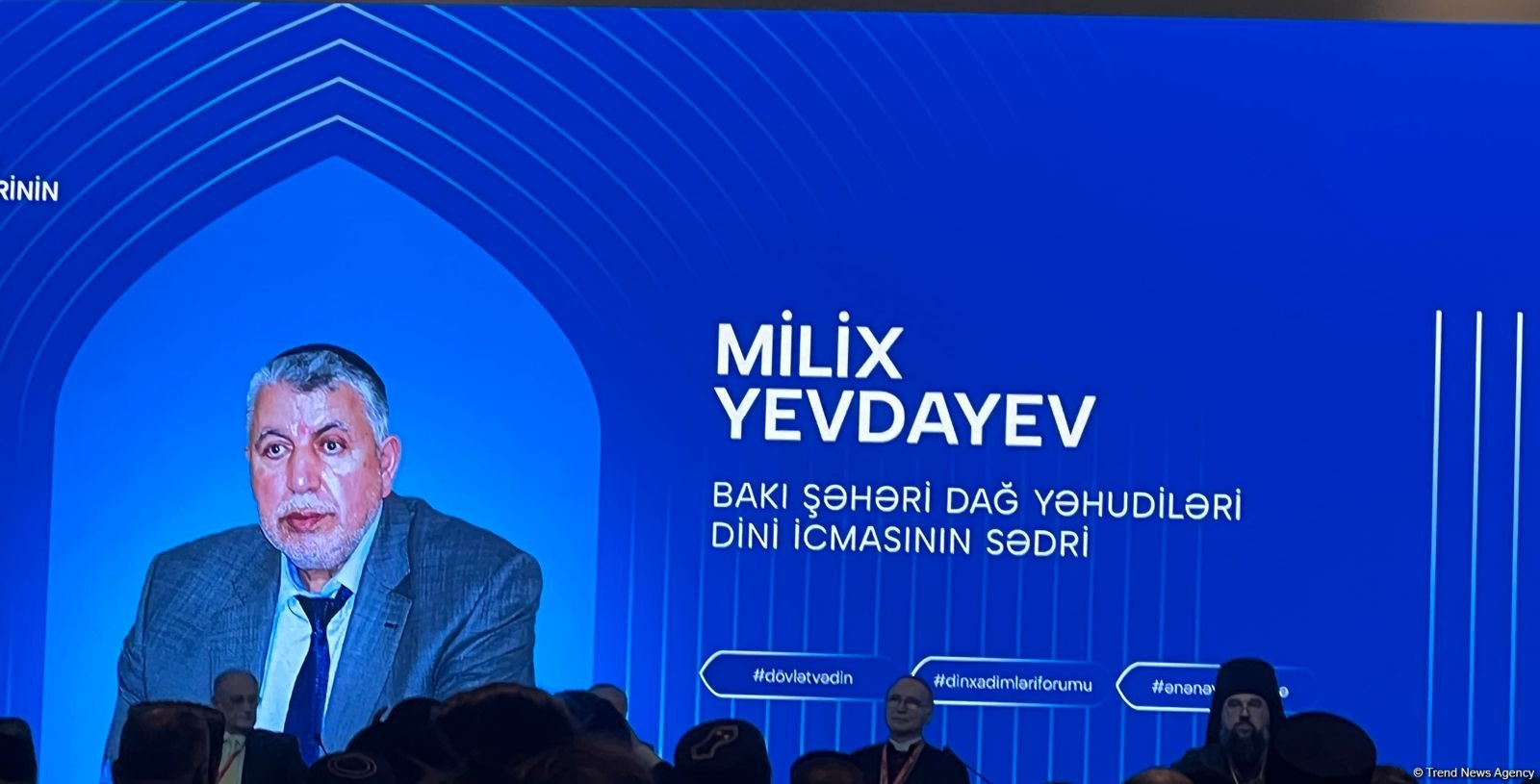 Как сообщает в понедельник Trend, об этом заявил руководитель Бакинской религиозной общины горских евреев Милих Евдаев на Форуме религиозных деятелей Азербайджана на тему "Актуальные вопросы религиозного просвещения: традиции, опыт и перспективы", проходящем 23 декабря в Баку.