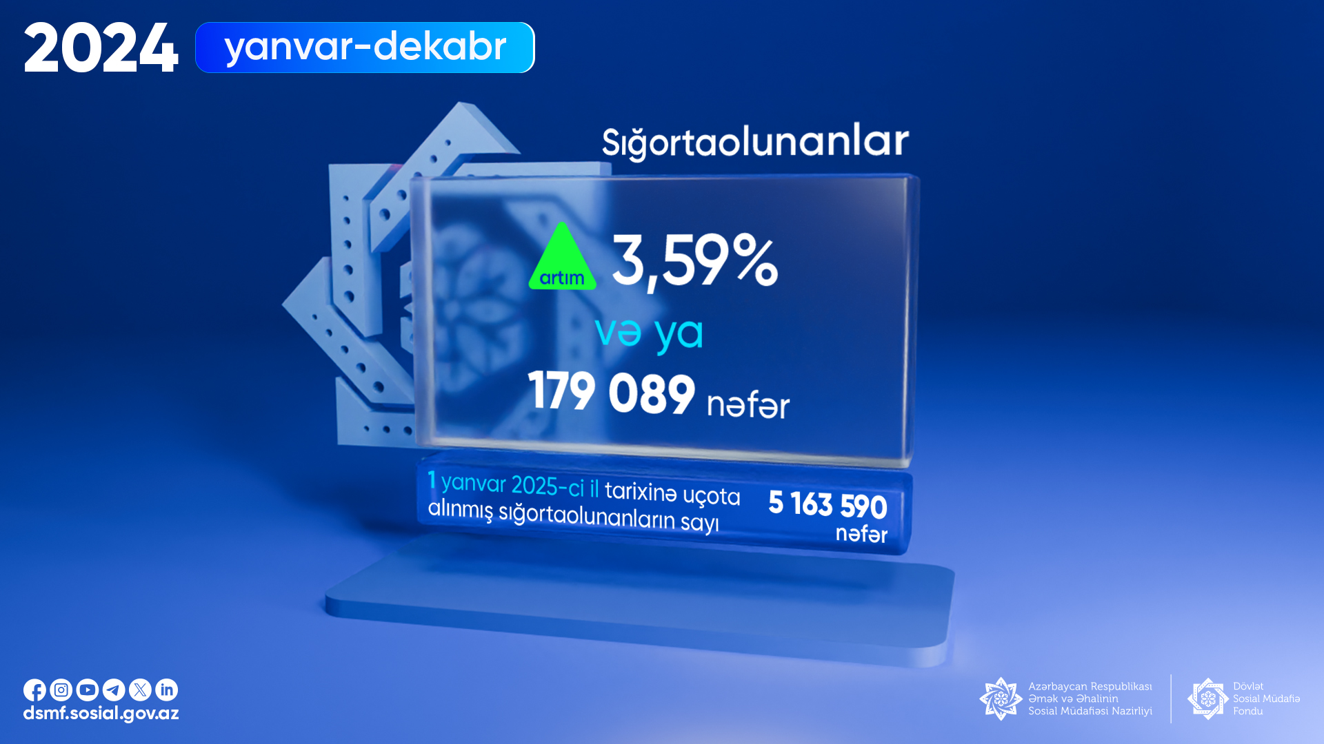 Таким образом, по состоянию на 1 января 2025 года количество застрахованных лиц в Азербайджане составило 5 миллионов 163 тысячи 590 человек.