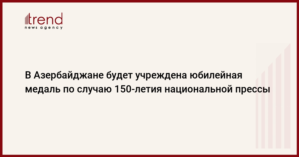 БАКУ /Trend/ - В Азербайджане будет учреждена юбилейная медаль по случаю 150-летия национальной прессы.