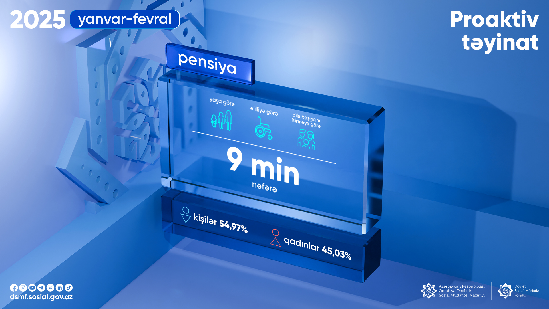 БАКУ /Trend/ - За январь-февраль 2025 года 9 тысячам человек в Азербайджане в проактивном порядке назначены пенсии по возрасту, инвалидности и по случаю потери кормильца.